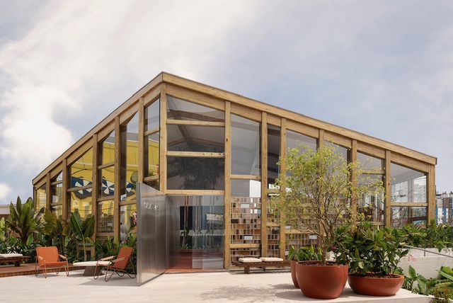 Pensar o espaço como elo vivo entre a cidade, a natureza e as possibilidades de um futuro consciente, responsivo, integrado e aberto ao novo; assim surge a Casa Dimas, projetada pela Octaedro, dos arquitetos Leonardo Gazzoni e Emanueli Schneiders: um oásis em que a arquitetura e a paisagem se tornam introdução a um sentido maior e mais amplo de sonhos possíveis, consciência ecológica e coletividade. A inspiração para o espaço surge da estrutura em madeira e vidro reaproveitada e ressignificada para a qual empresta-se um novo sentido: voltar o olhar para dentro, para o íntimo, para onde nasce o ímpeto para o sonho. Na transparência, na luz que desenha o espaço e na biofilia que atravessam delicadamente seu contorno, tudo é sobre inserir de forma sutil e poética a arquitetura na paisagem de forma a criar espaços de encontro e proximidade. Junto a isso, a Casa Dimas foi pensada para ser a base da Dimas Construções na Casacor, com o intuito de ser espaço de conexões, diálogo e interação com a cidade e com os projetos que irão se estabelecer no local no futuro. Espaço de introdução à Casacor, a Casa Dimas ocupa a fachada principal e ergue-se, na sua imponência e clareza, para conduzir o visitante por uma área extensa e acolhedora que envolve o edifício principal e revigora o espaço, suavizando o impacto visual da obra em seu entorno urbano. É nesse percurso que o tema "Semear Sonhos" se revela. Semear é plantar possibilidades, abrir caminhos, oferecer um ponto de partida.