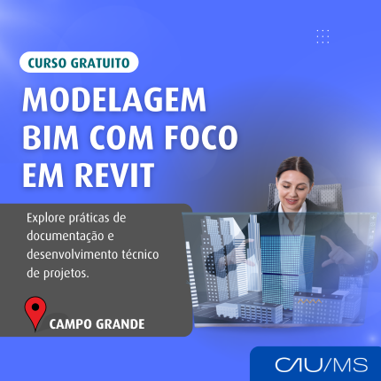 O CAU/MS está com inscrições abertas para o curso gratuito de Modelagem BIM com foco em Revit, voltado a arquitetos e urbanistas registrados no Conselho. As aulas acontecem na sede da autarquia, em Campo Grande, nos dias 27, 29 e 30 de novembro.