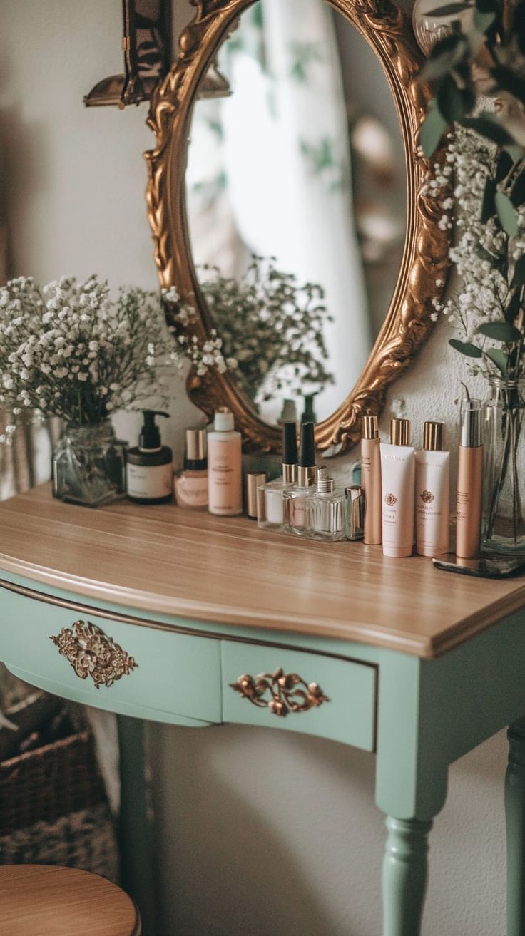 tons suaves, móveis envelhecidos e detalhes românticos.